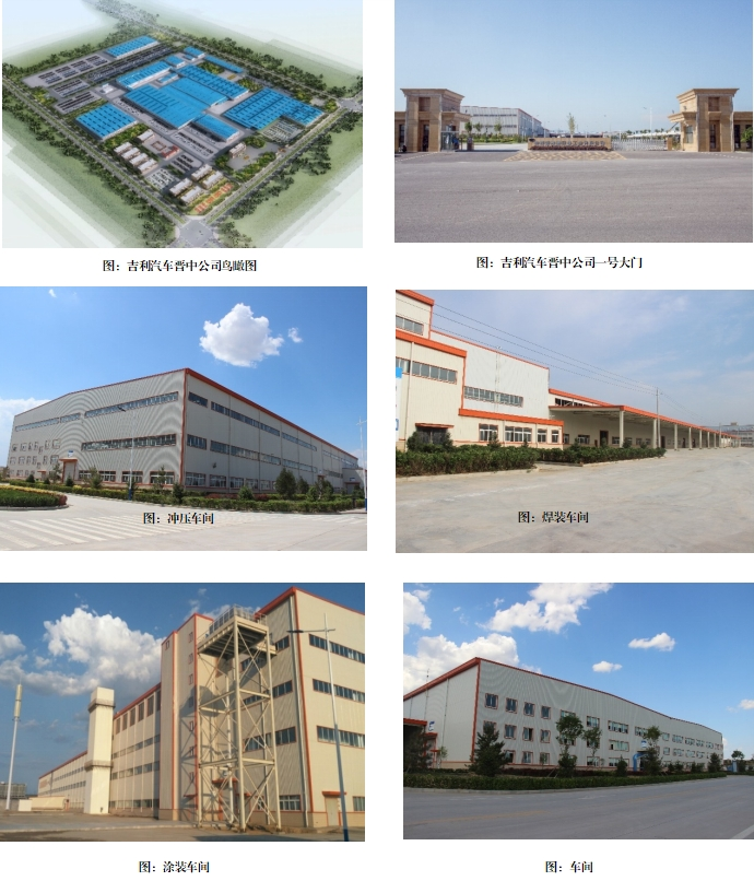 山西吉利汽车部件有限公司隶属于浙江吉利控股集团,是集团旗下独立子公司,2011年5月5日成立,占地面积1450亩,建有完整的冲压、焊装、涂装、总装四大工艺生产线及配套设施,建筑面积46万平米,总投资60亿元,园区解决就业4500余人。